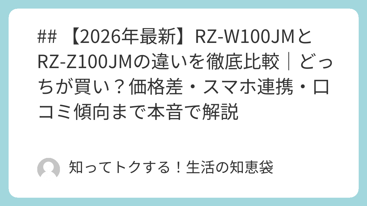 - 【比較検証】RZ-W100JMとRZ-Z100JMの違いをやさしく解説|どっちがおすすめ?